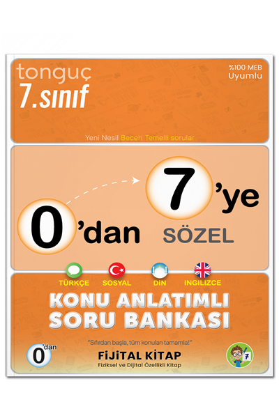 7. sınıf Türkçe, Sosyal, Din, İngilizce derslerini içeren 0’dan 7’ye Sözel kitabı, konuları sıfırdan öğrenip kendini hazırlaman için önemli bir fırsat.