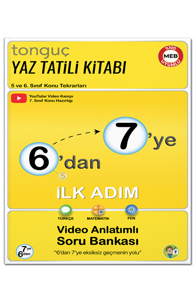 6'dan 7'ye Yaz Tatili Kitabı İlk Adım, 7. sınıfa geçen öğrencilerin yeni sınıfına sağlam bir temelle başlaması için 5 ve 6. sınıf konularını tekrar etmesini sağlayan bir yaz tatili hazırlık kitabıdır.