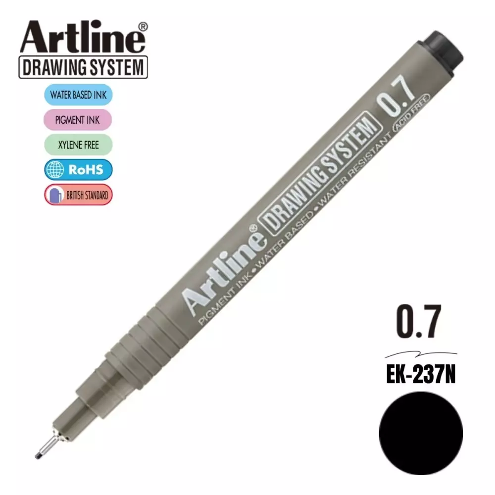 Artline Drawing System, yüksek su geçirmezliğe sahip mürekkebi ve zengin kalem ucu çeşitliliği sayesinde uzun yıllardır dünya çapında tercih edilmektedir.